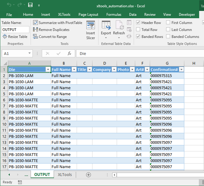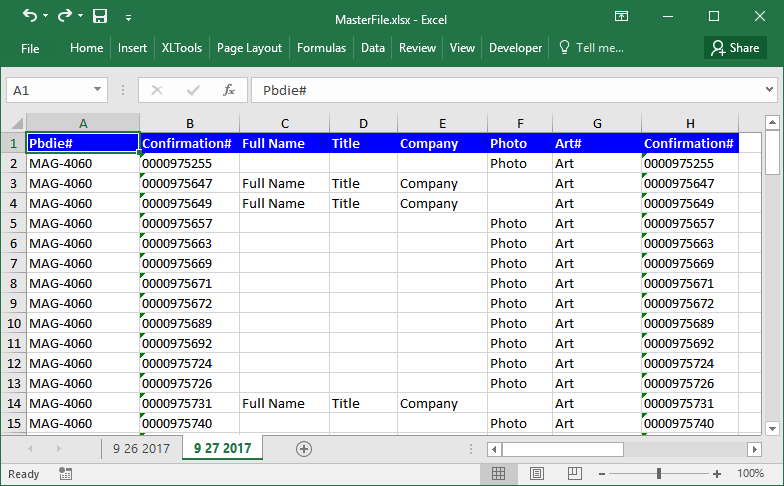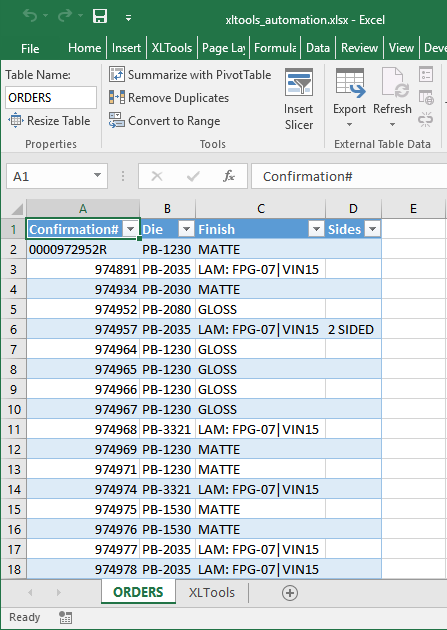 Done! Now the files are ready for upload into manufacturing system. Each file contains specifications of confirmed orders for a specific type of printing die.
