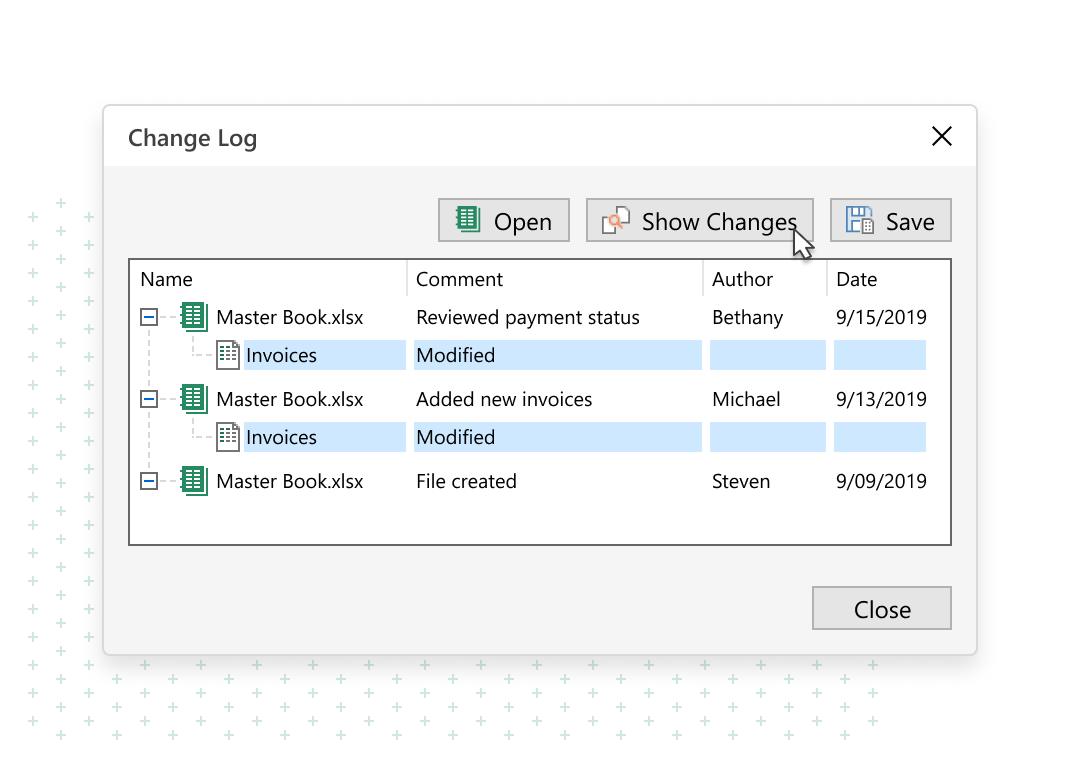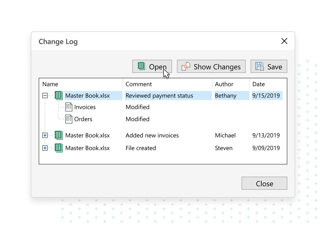 Track changesand retrieve any previous spreadsheet version